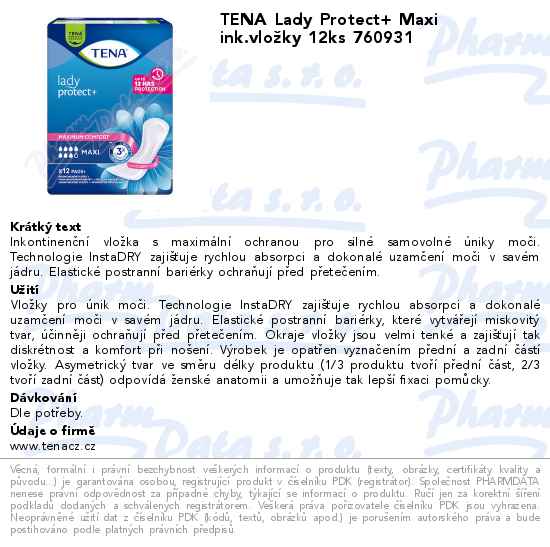 TENA Lady Protect+ Maxi ink.vložky 12ks 760931