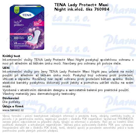 TENA Lady Protect+ Maxi Night ink.vlož. 6ks 760984
