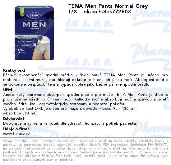 TENA Men Pants Normal Grey L/XL ink.kalh.8ks772803