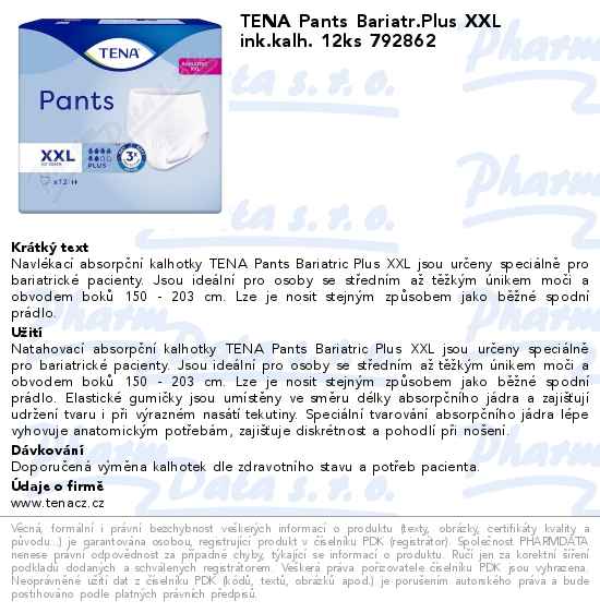 TENA Pants Bariatr.Plus XXL ink.kalh. 12ks 792862