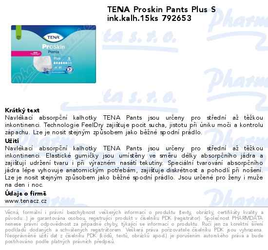 TENA Proskin Pants Plus S ink.kalh.15ks 792653