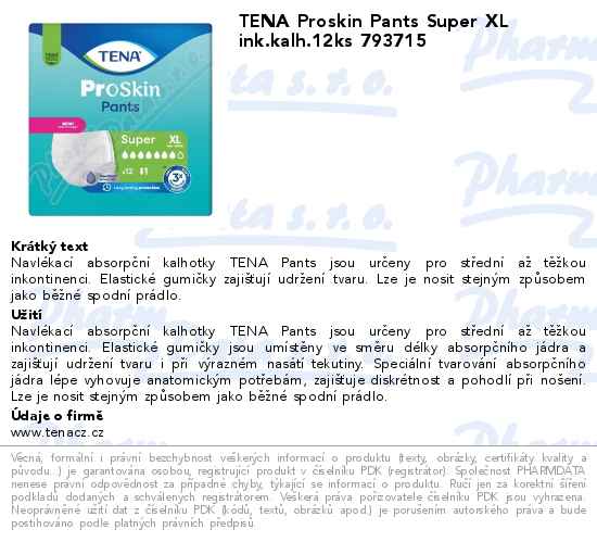 TENA Proskin Pants Super XL ink.kalh.12ks 793715