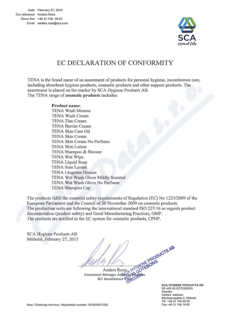 2 strany prohlášení o shodě: strana 1, strana 2,