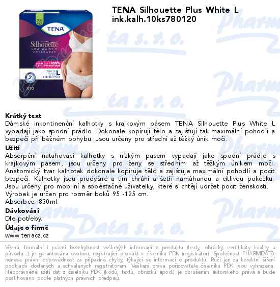 TENA Silhouette Plus White L ink.kalh.10ks780120