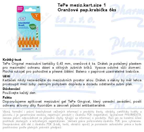 TePe meziz.kart.size 1 Oranžové pap.krabička 6ks