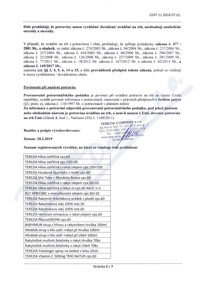 Výrobce: TEREZIA COMPANY S.R.O.