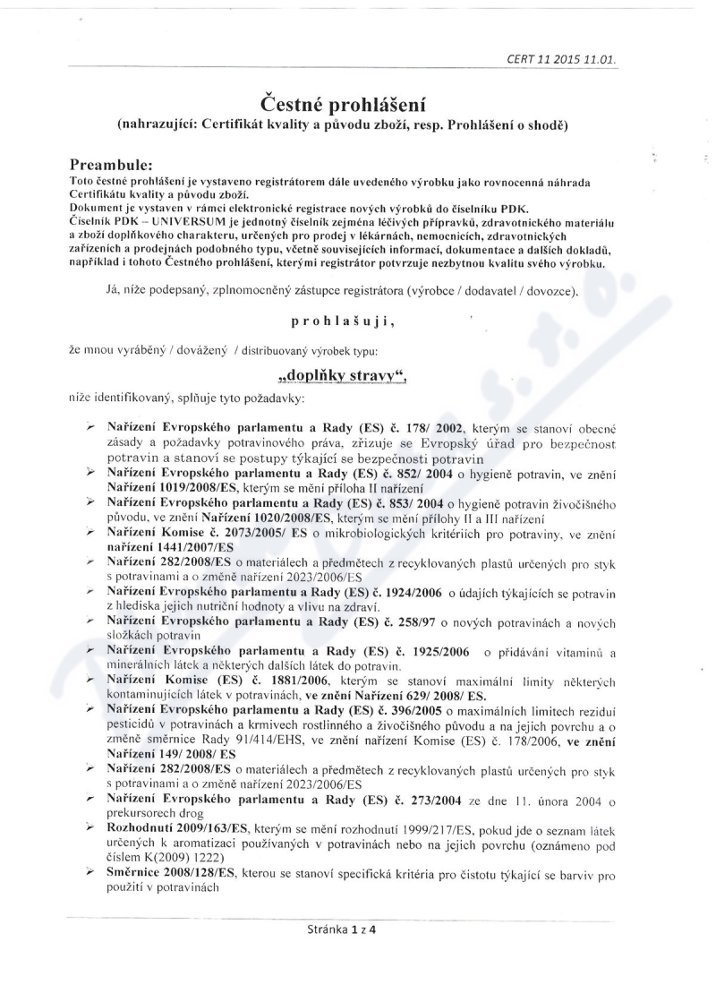 4 strany čestného prohlášení: strana 1, strana 2, strana 3, strana 4,