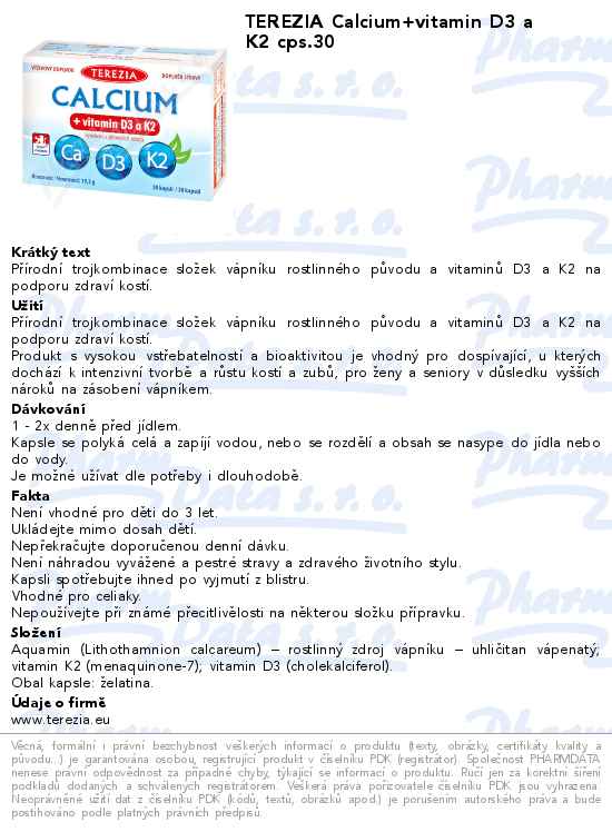 TEREZIA Calcium+vitamin D3 a K2 cps.30