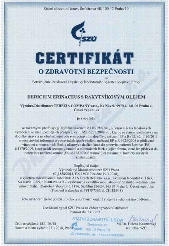 TEREZIA Hericium erinaceus s rakyt.olejem cps.60