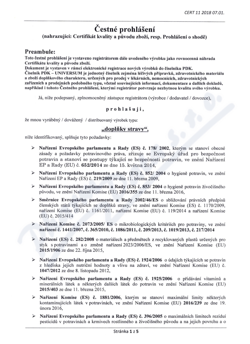 5 strany čestného prohlášení: strana 1, strana 2, strana 3, strana 4, strana 5,