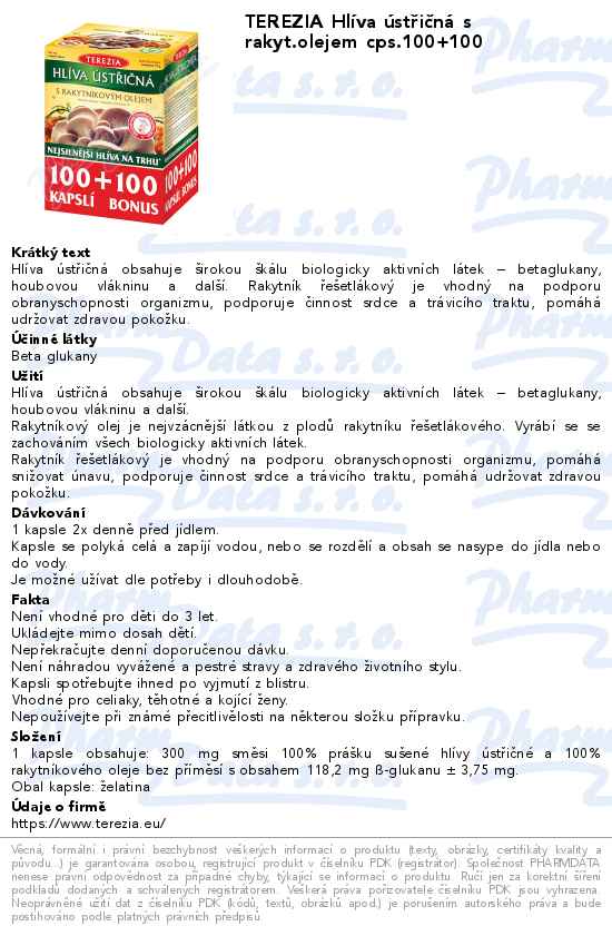 TEREZIA Hlíva ústřičná s rakyt.olejem cps.100+100