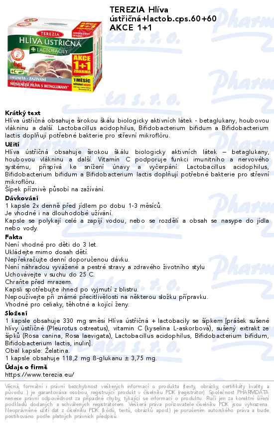 TEREZIA Hlíva ústřičná+lactob.cps.60+60 AKCE 1+1