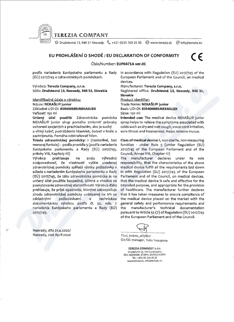 Výrobce: TEREZIA COMPANY S.R.O.