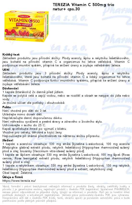 TEREZIA Vitamin C 500mg trio natur+ cps.30