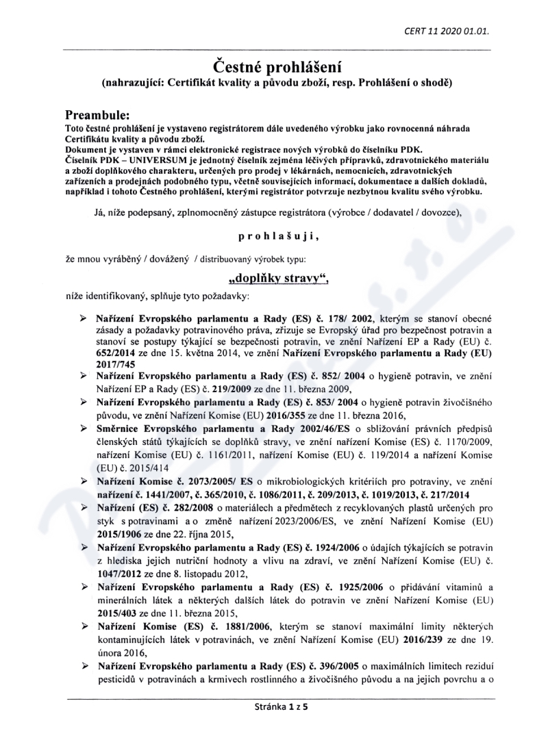 5 strany čestného prohlášení: strana 1, strana 2, strana 3, strana 4, strana 5,