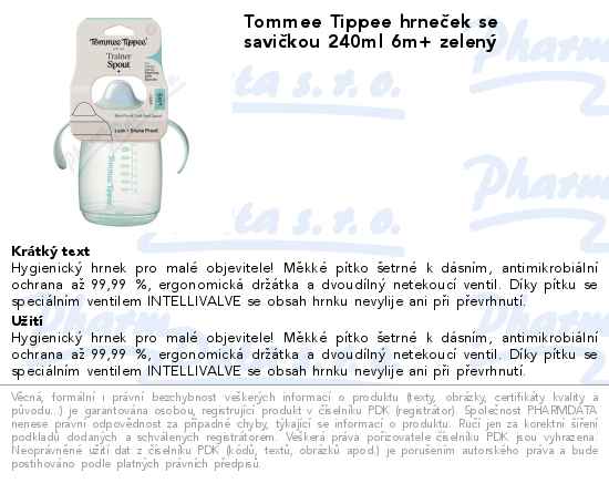 Tommee Tippee hrneček se savičkou 240ml 6m+ zelený
