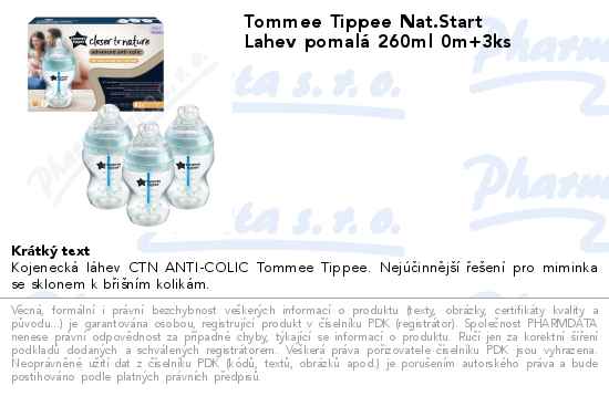 Tommee Tippee Nat.Start Lahev pomalá 260ml 0m+3ks