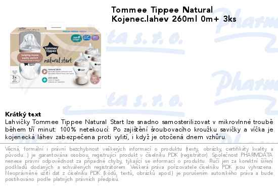 Tommee Tippee Natural Kojenec.lahev 260ml 0m+ 3ks
