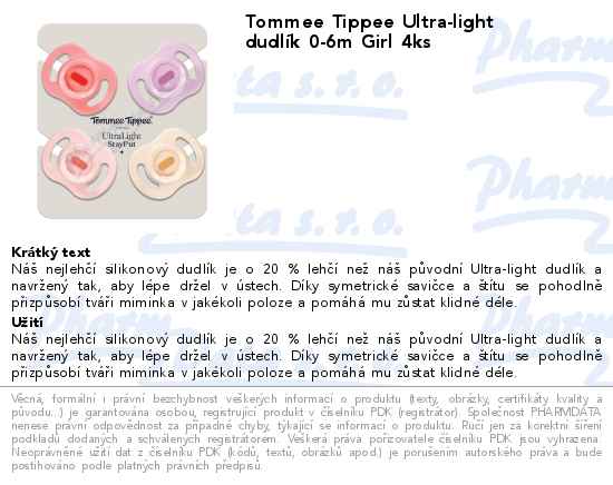 Tommee Tippee Ultra-light dudlík 0-6m Girl 4ks