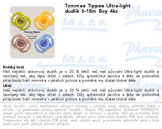 Tommee Tippee Ultra-light dudlík 6-18m Boy 4ks