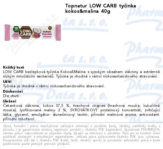 Topnatur LOW CARB tyčinka kokos&malina 40g