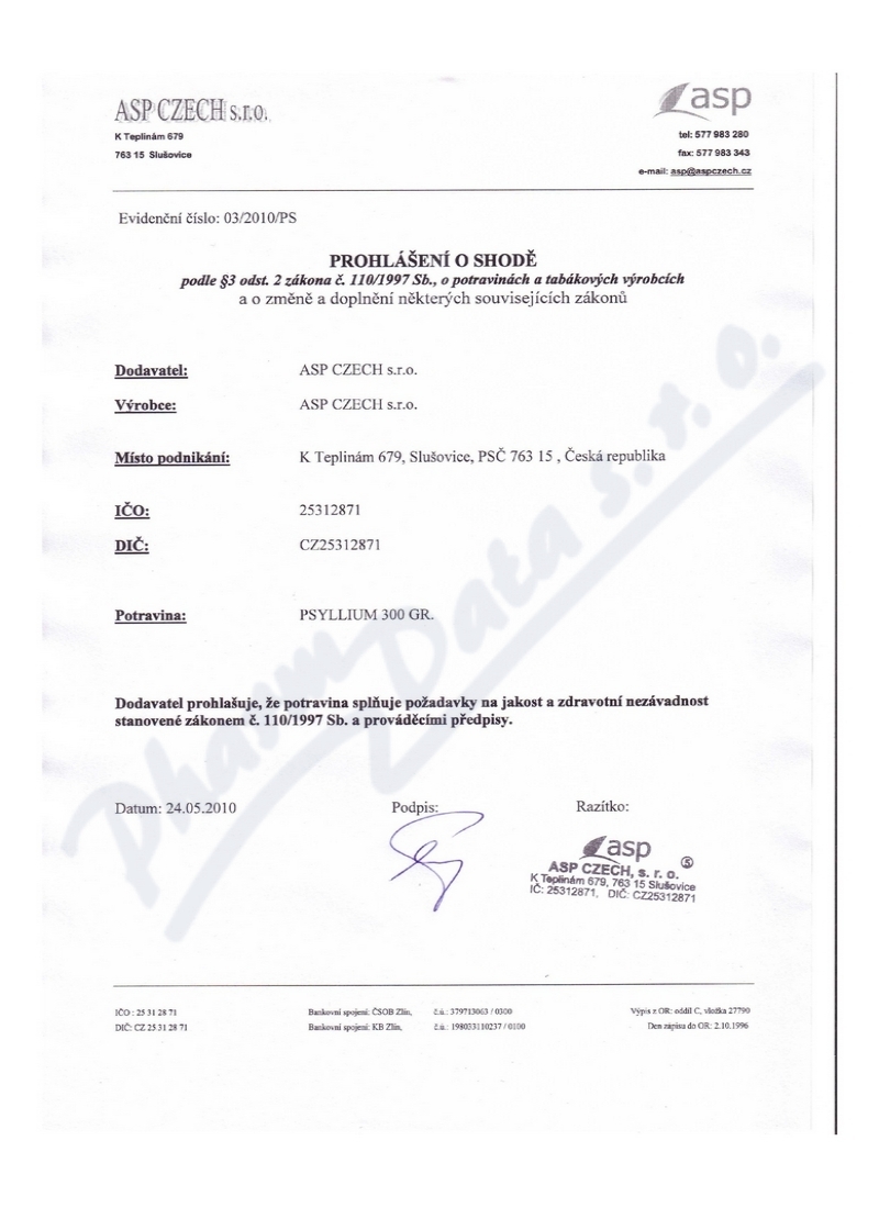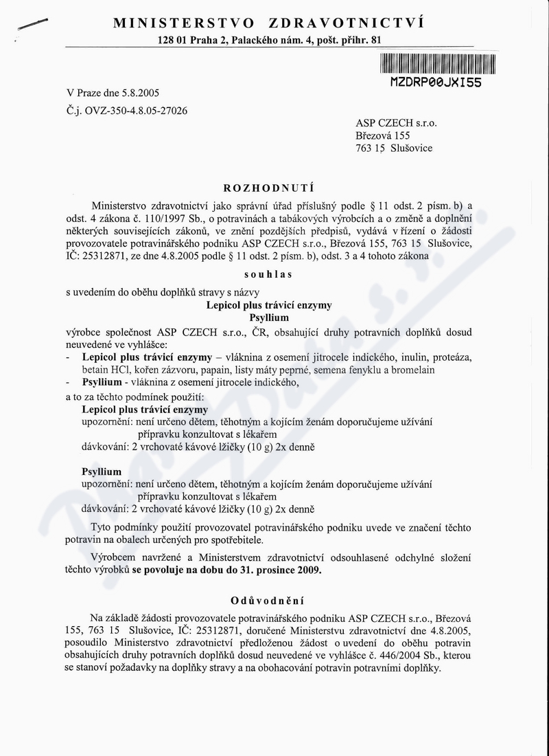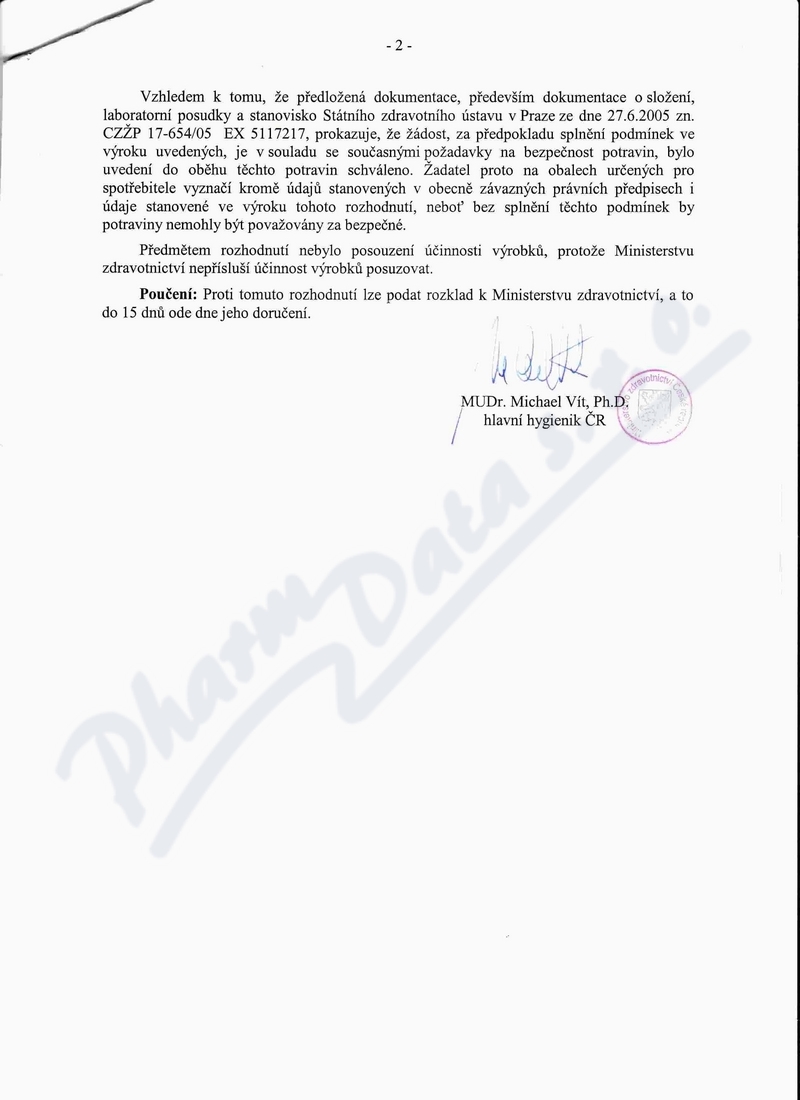 2 strany osvědčení hlavního hygienika: strana 1, strana 2,