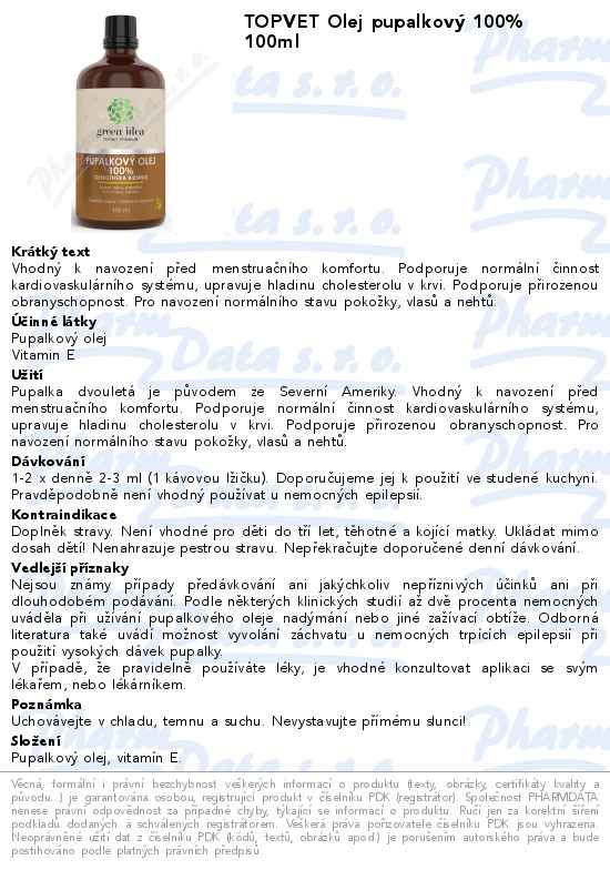TOPVET Olej pupalkový 100% 100ml
