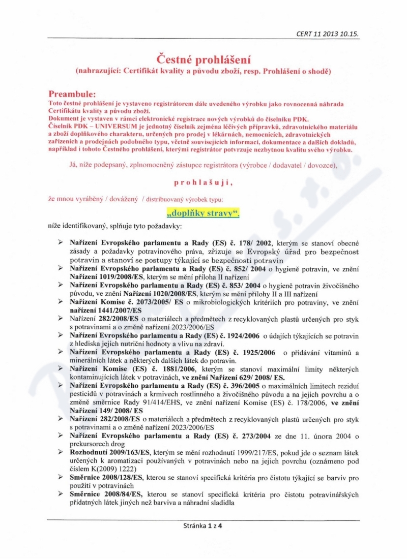 4 strany čestného prohlášení: strana 1, strana 2, strana 3, strana 4,