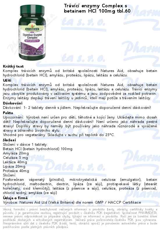 Trávící enzymy Complex s betainem HCl 100mg tbl.60