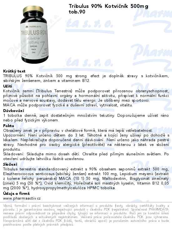 Tribulus 90% Kotvičník 500mg tob.90