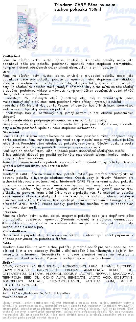 Trioderm CARE Pěna na velmi suchou pokožku 150ml