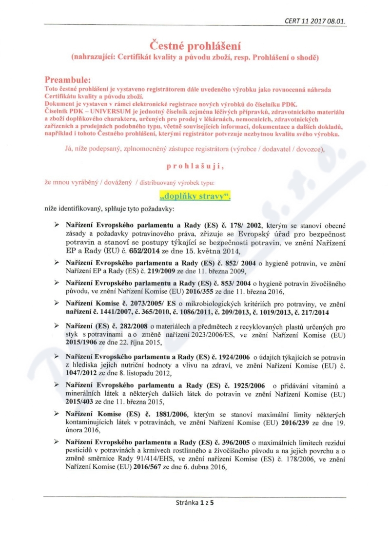 5 strany čestného prohlášení: strana 1, strana 2, strana 3, strana 4, strana 5,