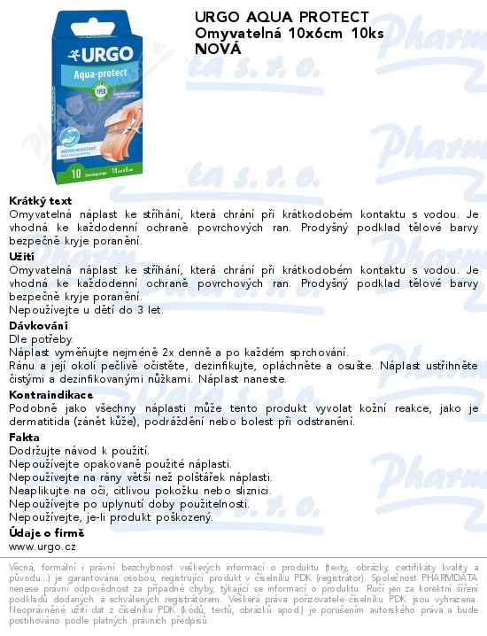 URGO AQUA PROTECT Omyvatelná 10x6cm 10ks NOVÁ