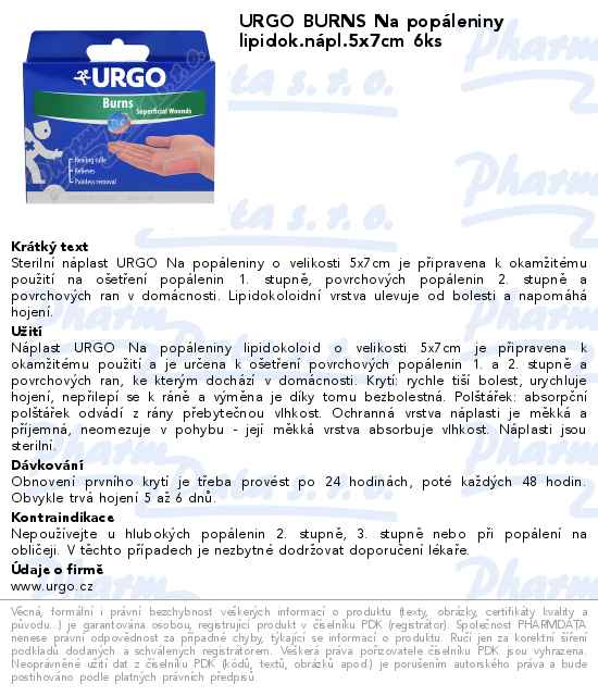 URGO BURNS Na popáleniny lipidok.nápl.5x7cm 6ks