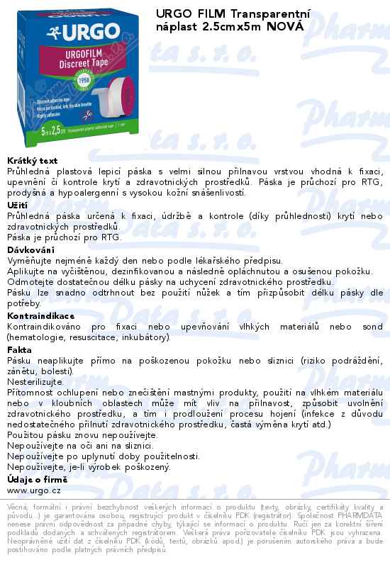 URGO FILM Transparentní náplast 2.5cmx5m NOVÁ