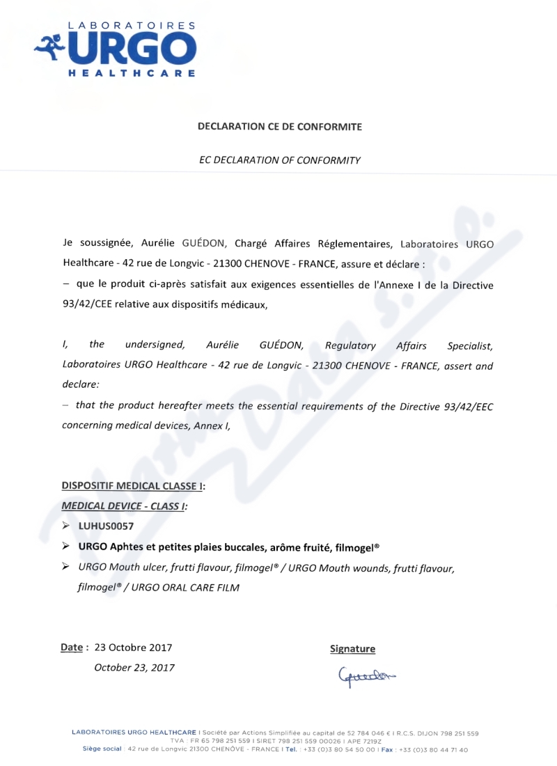 Výrobce: LABORATOIRES URGO HEALTHCARE, Chenôve