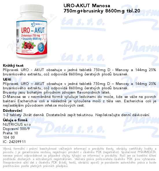 URO-AKUT Manosa 750mg+brusinky 8600mg tbl.20