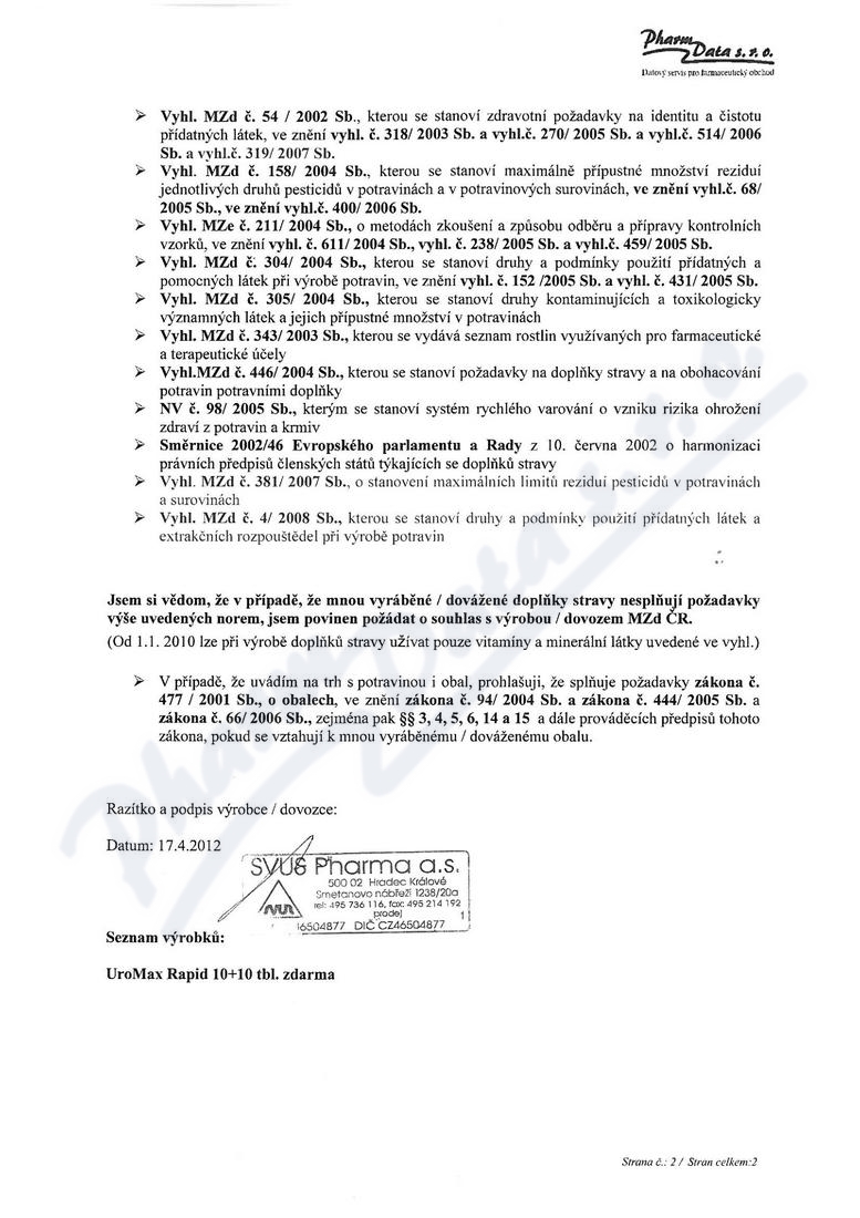 Výrobce: SVUS PHARMA A.S., Hradec Králové