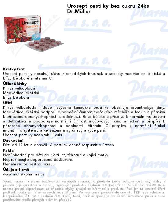 Urosept pastilky bez cukru 24ks Dr.Müller