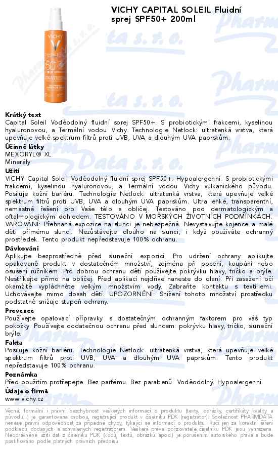 VICHY CAPITAL SOLEIL Fluidní sprej SPF50+ 200ml