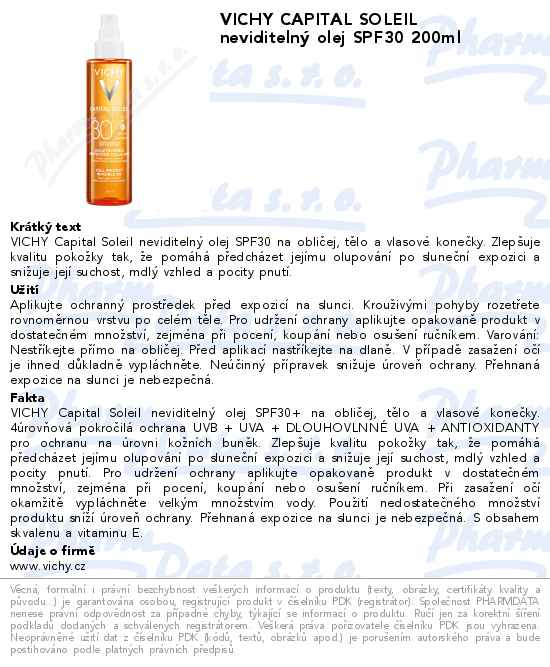 VICHY CAPITAL SOLEIL neviditelný olej SPF30 200ml