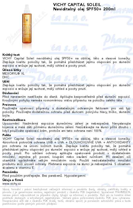 VICHY CAPITAL SOLEIL Neviditelný olej SPF50+ 200ml