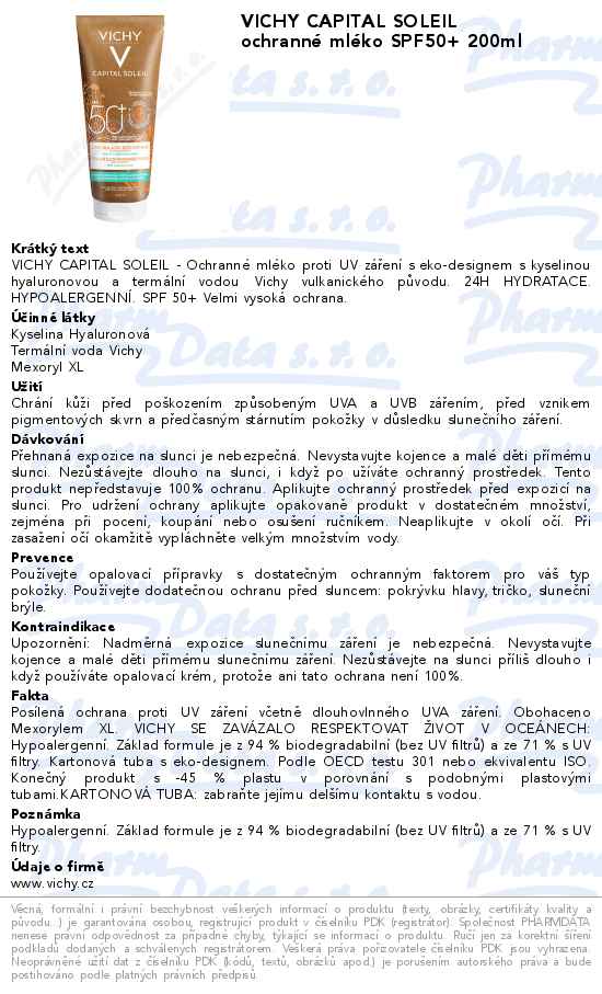 VICHY CAPITAL SOLEIL ochranné mléko SPF50+ 200ml