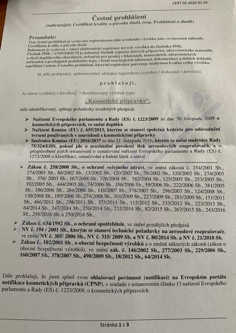 2 strany čestného prohlášení: strana 1, strana 2,