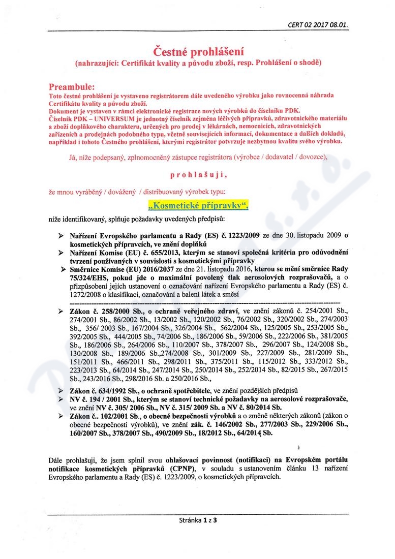 3 strany čestného prohlášení: strana 1, strana 2, strana 3,