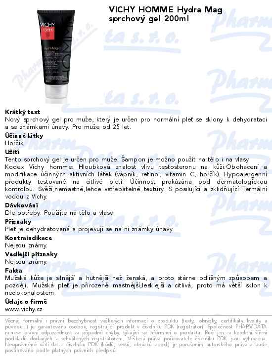 VICHY HOMME Hydra Mag sprchový gel 200ml