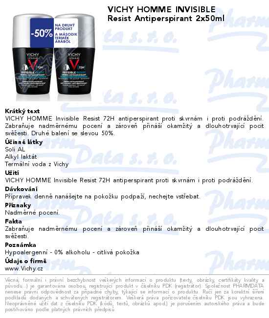 VICHY HOMME INVISIBLE Resist Antiperspirant 2x50ml