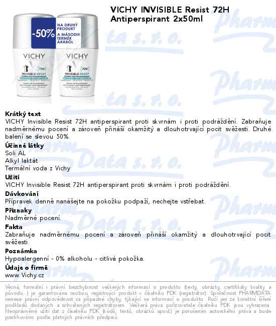 VICHY INVISIBLE Resist 72H Antiperspirant 2x50ml