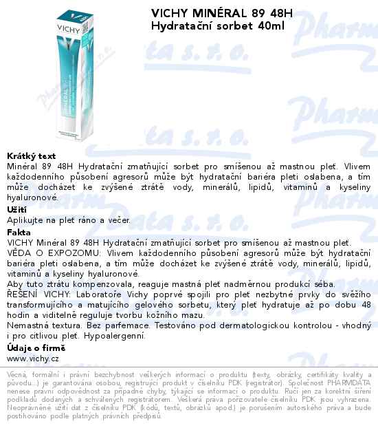 VICHY MINÉRAL 89 48H Hydratační sorbet 40ml