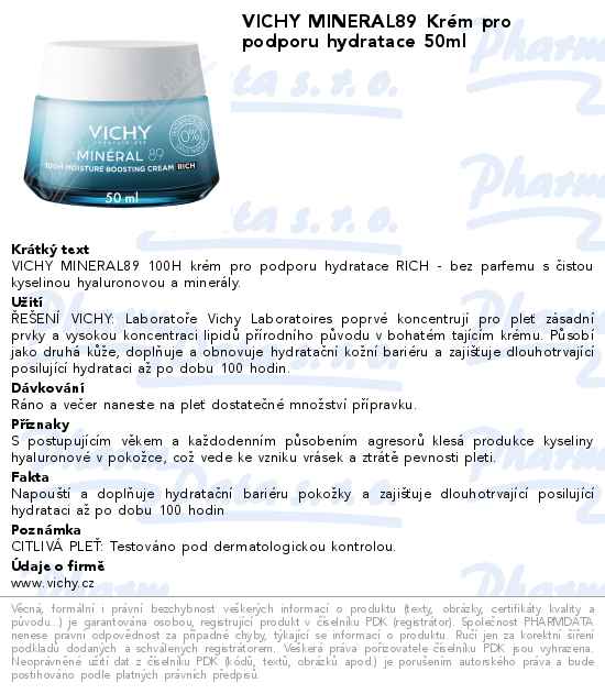 VICHY MINERAL89 Krém pro podporu hydratace 50ml